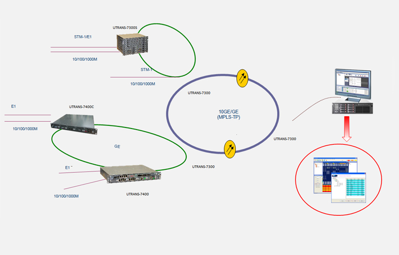 UTRANS-7300/7300S 장치는 MPLS-TP 가 탑재된 160G/80G급(양방향) 장비로서, 패킷 기반(Ethernet, IP)서비스와 회선 기반(SDH/SONET, PDH)서비스를 수용하는 집선(Aggrega