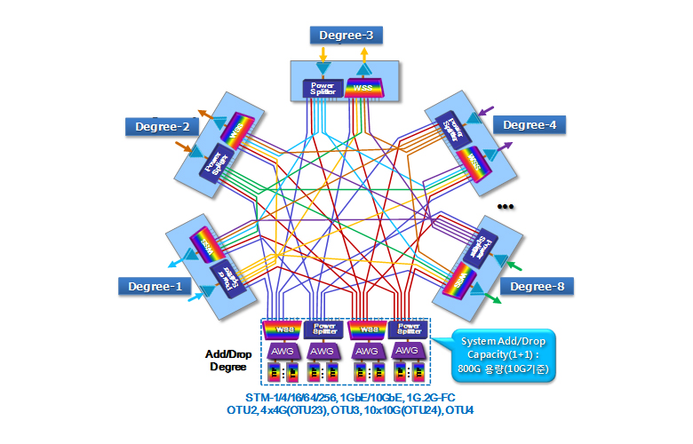 - WSS 사용으로 망구성의 용이성 및 망 생존성 극대화 제공