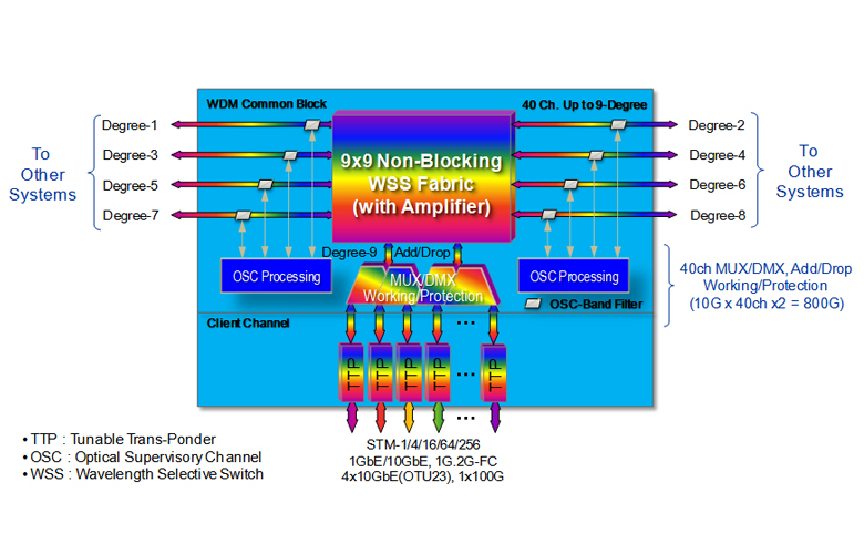 - 망구성 및 사용용도에 따라 ROADM 또는 CAPEX 절감이 가능한 Fixed OADM 방식으로 선택적 운용가능