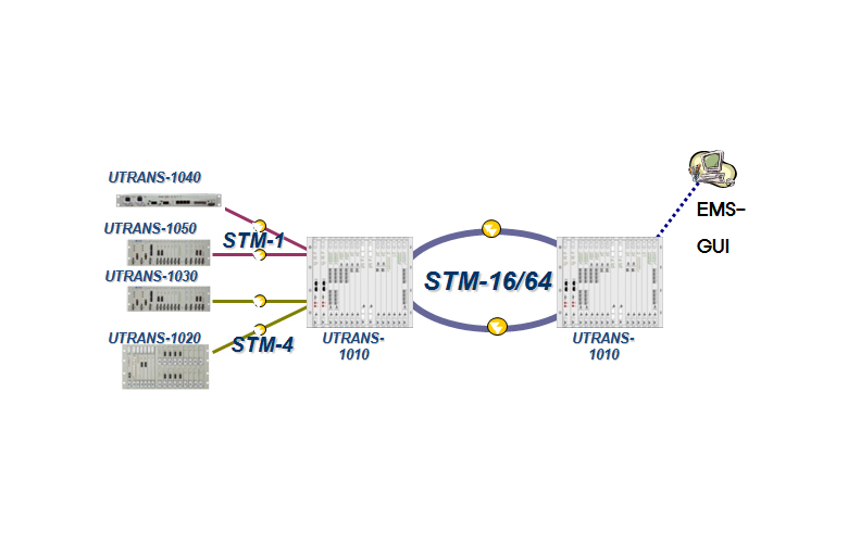 UTRANS-1030 시스템은 PDH 신호 및 동기식 광 신호를 다중화/역다중화하여 광 전송, 분기결합 및 상호분배 기능을 제공하며, Ethernet 신호 전달 기능을 제공할 수 있는 STM-1/STM-4 기반의 MSPP 장치이다.