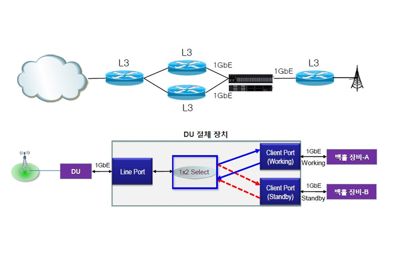 - LTE 백홀 장비와 DU간의 회선 이중화를 위한 절체기능.