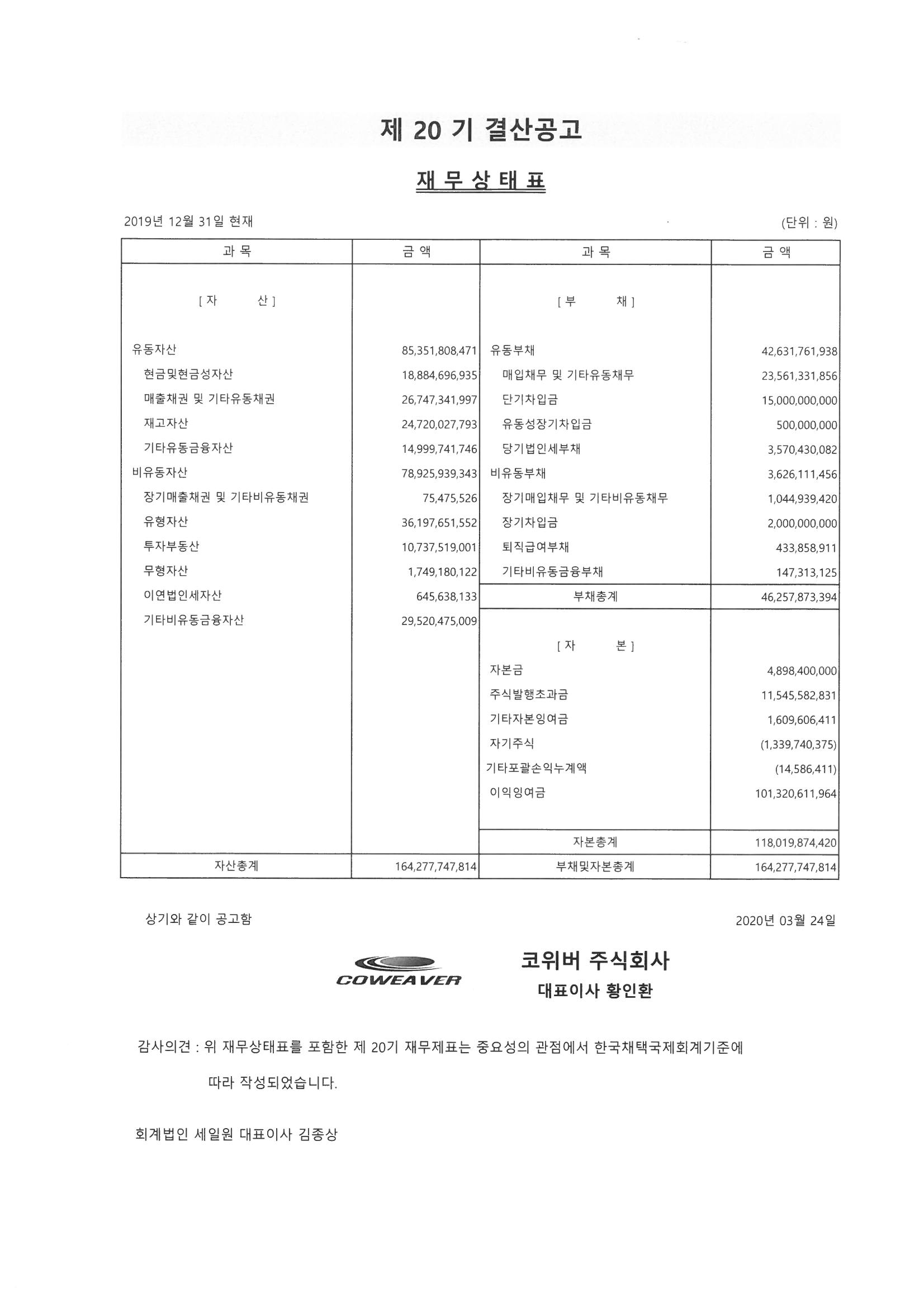 | 21 | 제20기 결산공고 | 관리자 | 20-03-25 | 92,744 |
